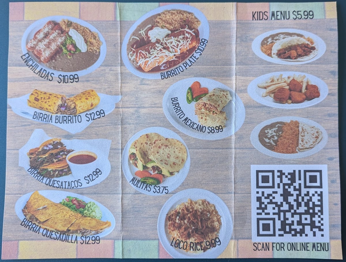 If you're craving something special, indulge in our Birria Quesatacos, a delectable trio of corn tortillas loaded with melted cheese and beef birria, paired with a rich consomé for $13.99. Don't forget to sweeten your experience with our Caramel Churro for just $2.99.